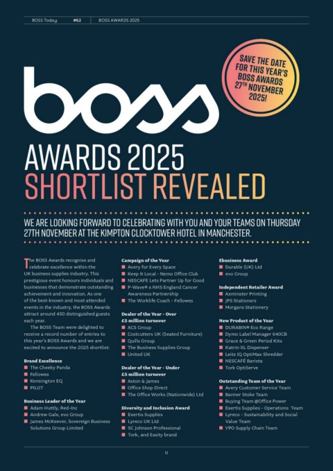 excited to announce the 2025 shortlist: n The Business Supplies Group n Katrin XL Dispenser