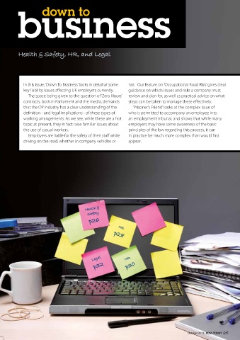 In this issue, ‘Down To Business’ looks in detail at some not. Our feature on ’Occupational Road Risk’ gives clear